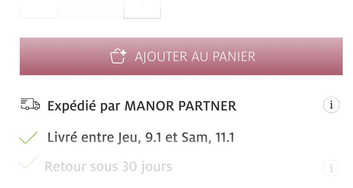 - Les produits partenaires sont vendus par Manor mais expédiés directement par nos partenaires via des livraisons séparées, sans frais supplémentaires.