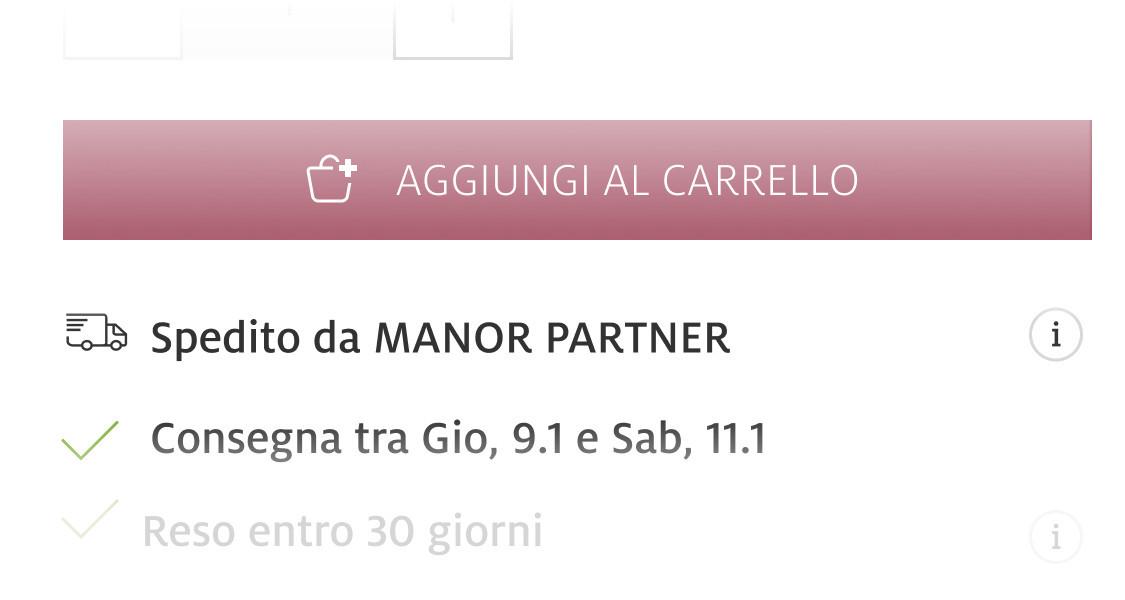 - I prodotti partner sono venduti da Manor ma spediti direttamente dai nostri partner tramite consegne separate, senza costi aggiuntivi.